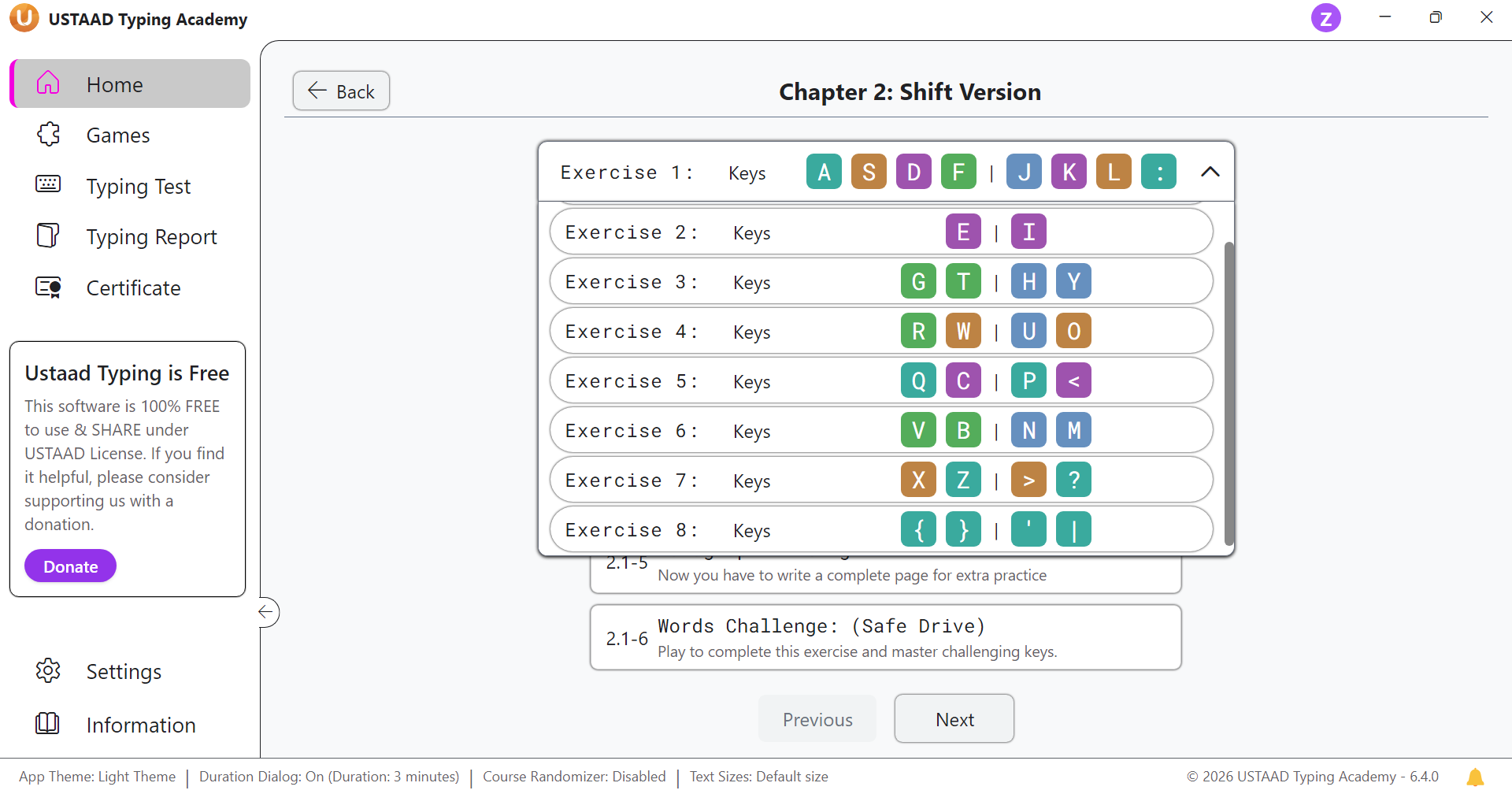 - 2.1-6 Words Challenge (Safe Drive): Reinforce mixed-case word typing with Safe Drive