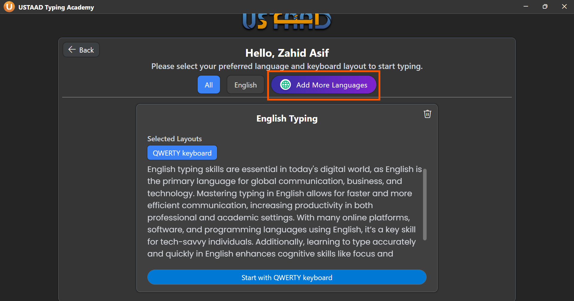 - Launch USTAAD Typing Academy