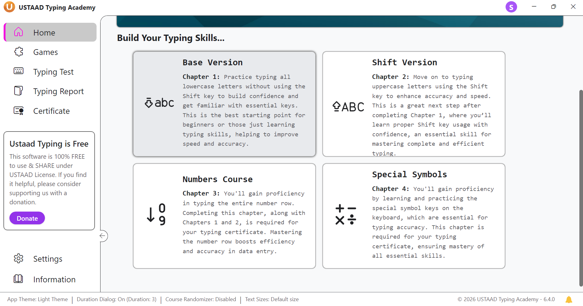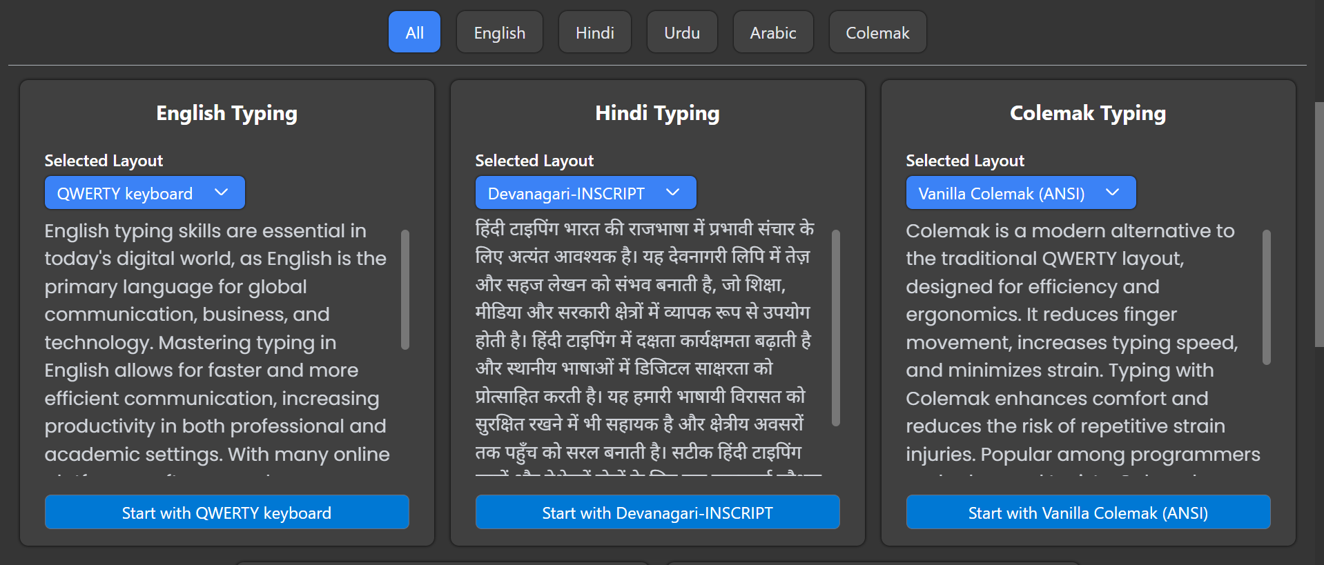 USTAAD Typing Academy currently supports multiple languages and layouts, making it one of the most versatile typing platforms available.