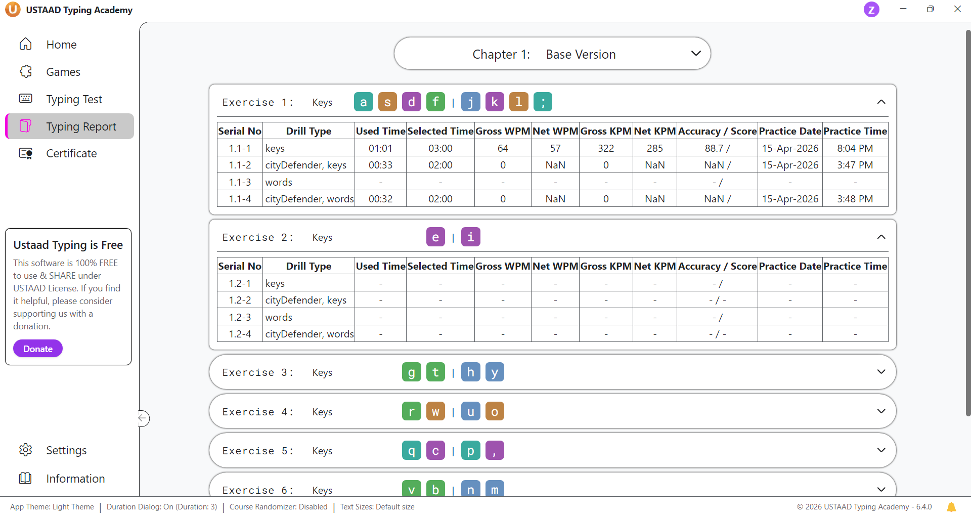 The Typing Reports tab is the dedicated section for reviewing past typing results, tracking progress, and interpreting performance trends.
