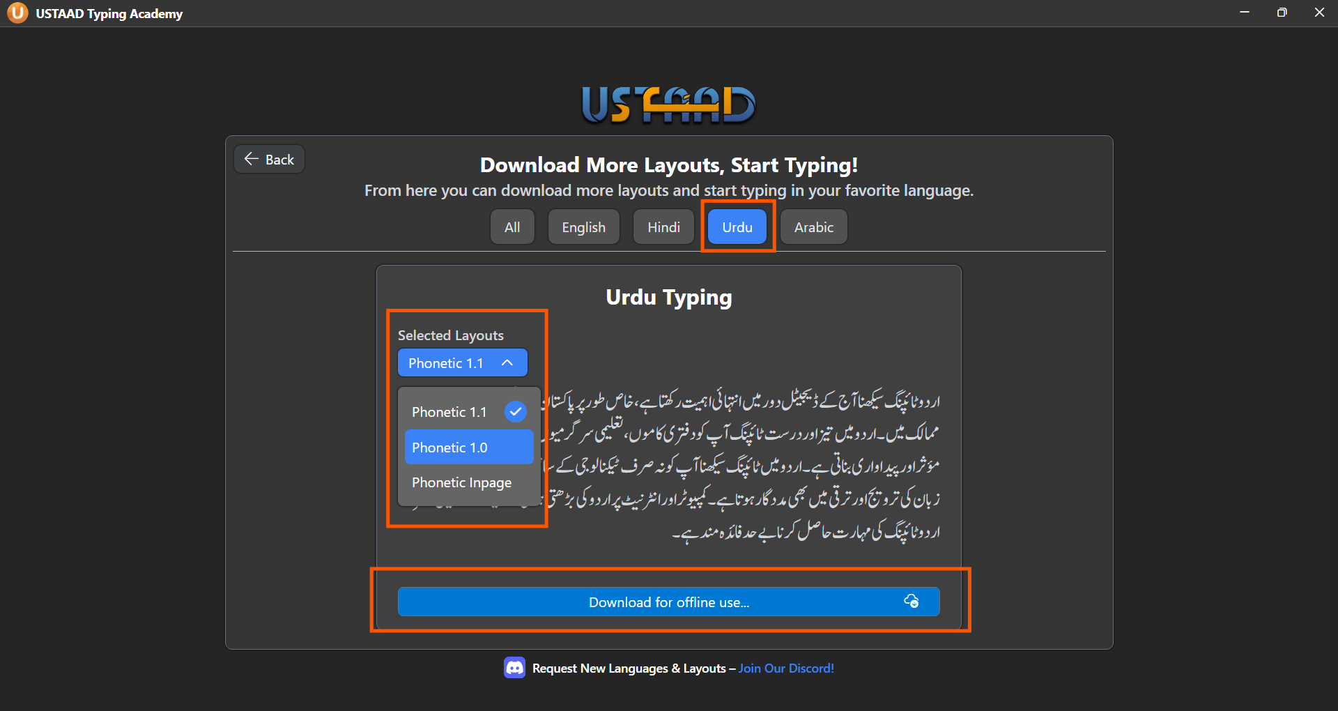 USTAAD Typing Academy allows you to download Urdu-specific typing courses so you can practice offline anytime.